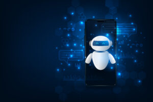 Chatbot assistant application on a smartphone. Artificial intell